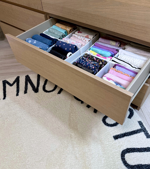 The kids ’ rooms now feel brighter, cleaner and more spacious since the layout was redesigned. Everything now has its place, helping the rooms stay tidy and giving the kids a sense of calm and focus when they study. ”